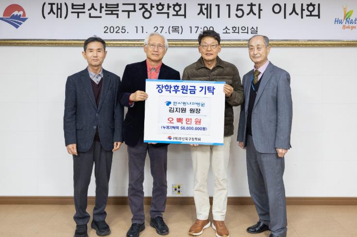 [뉴스다컴] 부산 북구는 최근 한사랑내과병원 김지원 원장이 (재)부산북구장학회에 장학기금 500만 원을 기탁했다고 밝혔다.