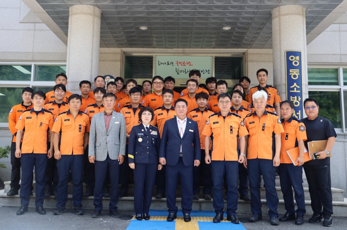 정영철 영동군수는 “각종 재난재해와 사고 예방을 위해 밤낮없이 근무하는 소방대원들의 희생정신에 감사하다”며 “앞으로도 군민의 안전지킴이로써 맡은 바 임무에 최선을 다해주길 부탁드린다”고 말했다.