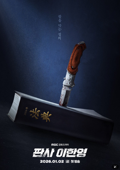 ‘판사 이한영’ 제작진은 “티저 포스터는 ‘칼을 막는 정의’라는 메시지를 가장 효과적으로 담아낼 수 있는 오브제에 집중했다”며 “판사를 상징하는 법전과 이한영을 겨눈 칼이 맞부딪히는 순간을 통해 작품의 핵심 정서와 인물의 신념을 시각화했다. 2026년을 여는 첫 작품으로서 새로운 시작을 알릴 ‘판사 이한영’에 많은 기대 부탁드린다”고 설명했다.