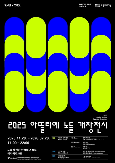 [뉴스다컴] 서울시는 한강 중심부 노들섬 남단 한강대교 하부에 공공 미디어아트 전시플랫폼 ‘아뜰리에 노들’을 11월 28일 개장하고, 2026년 2월 28일까지 매일 오후 5시부터 10시까지 운영한다고 밝혔다.
