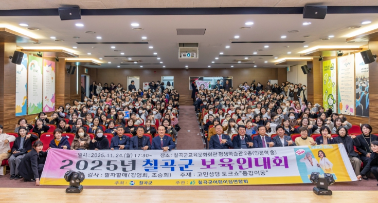 [뉴스다컴] 칠곡군어린이집연합회(회장 박우영)는 지난 24일 칠곡군교육문화회관 인문학홀에서 관내 어린이집 원장과 보육교사 등 보육교직원 250여 명이 참석한 가운데 ‘2025년 칠곡군 보육인 대회’를 성대하게 개최했다.