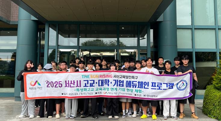 [뉴스다컴] 충남 서산시는 9월 한 달간 서산공업고등학교 학생 108명을 대상으로 2025 고교·대학·기업 에듀체인 프로그램을 운영했다고 밝혔다.