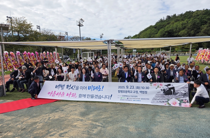 [뉴스다컴] 전남 함평군이 ‘백범 김구’ 함평사적비를 제막하며 군민의 애국심을 고취했다.