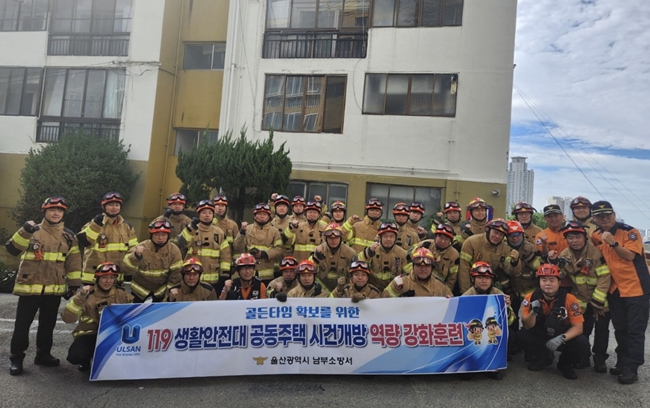 [뉴스다컴] 울산 남부소방서는 9월 24일까지 중구 재개발지역 아파트 단지에서 화재 현장 골든타임 확보를 위한 `방화문 시건개방 구조훈련'을 실시하고 있다고 밝혔다.