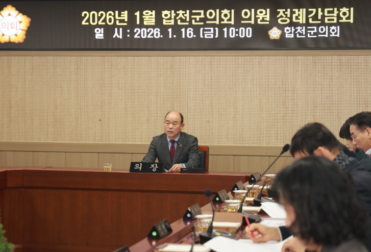 이날 정례간담회에서 정봉훈 의장은 “전 의원과 공직자께서는 병오년 새해, 군민을 위한 의정과 군정 실현을 위해 ‘2026년도 군민과의 대화’의 업무추진에 만전을 기하여, 군민이 더욱 살기 좋은 합천군으로 이끌어 주실 것을 당부한다.”고 전했다.
