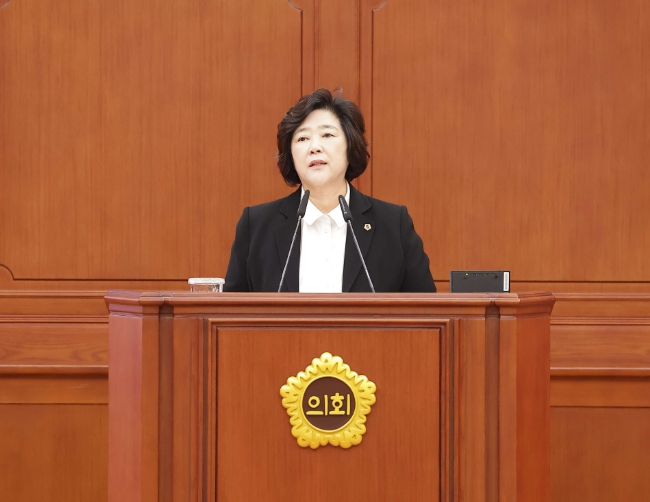 5분 발언에 나선 안경자 의원은 대전의 농업인들이 급격한 도시화와 기후 변화 속에서도 지역 먹거리 공급과 농촌 경관 보전 등 근교 농촌의 역할을 충실히 수행해 왔음에도 불구하고, 도시근로자와 농업인의 연소득 격차가 3,450만 원에 이를 정도로 그 가치가 제대로 평가받지 못하고 있다고 지적했다.