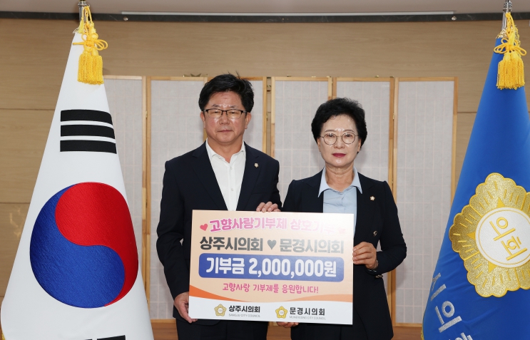 [뉴스다컴] 상주시의회는 15일, 고향사랑기부제 활성화를 유도하고 지역 상생발전을 도모하기 위해 문경시의회(의장 이정걸)와 고향사랑기부제 상호기부를 진행했다.