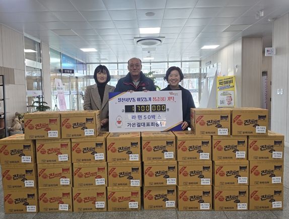| ▲ 가온길 최숭영 대표, 설날맞아 라면50박스 기탁 |
