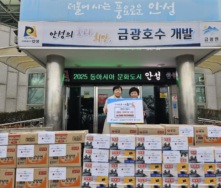 [뉴스다컴] 안성시는 12월 23일, 금광면 주민자치위원회 양영순 위원장이 겨울철 취약계층 가구의 따뜻한 겨울나기를 돕기 위해 라면, 김 등 생필품 100만원 상당을 금광면 행정복지센터에 기탁했다고 밝혔다.