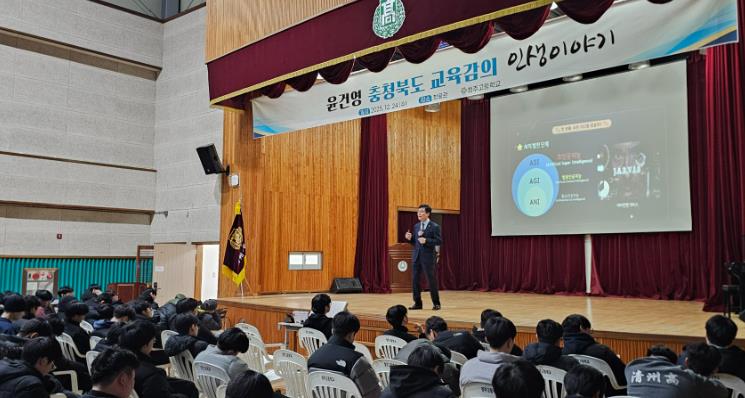 | ▲ 윤건영 교육감, 청주고 학생 대상 강연 진행 |