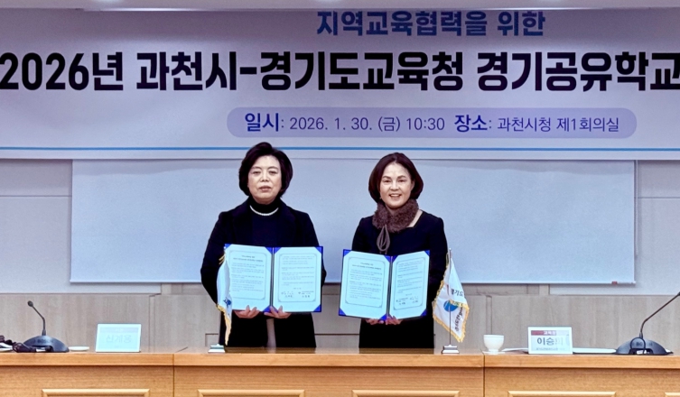 [뉴스다컴] 안양과천교육지원청은 1월 30일, 과천시청에서 과천시(시장 신계용)와 지역의 교육자원을 활용한 학생 맞춤형 미래교육 확대와 지속 가능한 지역교육협력 체계 구축을 위해 '2026 지역교육협력을 위한 과천시–경기도교육청 경기공유학교 업무협약'을 체결했다.