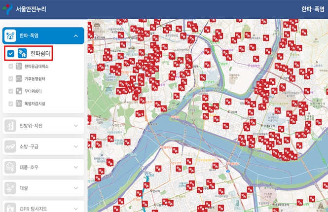 | ▲ 서울안전누리 내 한파쉼터 안내도(전체) |
