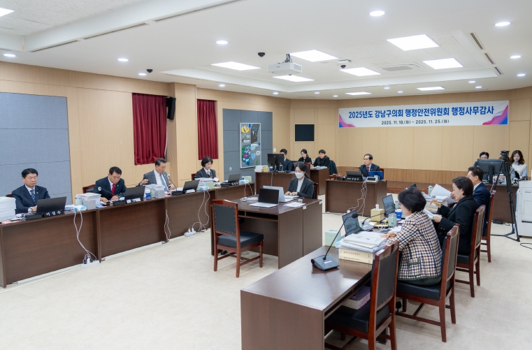 [뉴스다컴] 강남구의회 행정안전위원회는 제331회 제2차 정례회를 맞아 11월 18일부터 25일까지 총 8일간 중대재해예방실, 정책홍보실, 감사담당관, 행정국(동 주민센터 포함), 안전교통국 소관 부서에 대한 행정사무감사를 실시했다.
