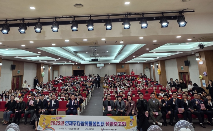 [뉴스다컴] 부산시 연제구는 11월 14일 구청 구민홀에서 아동, 학부모, 시설종사자 및 법인관계자 등 250여 명이 참여한 가운데 ‘제1회 연제구다함께돌봄센터 성과보고회’를 개최했다.