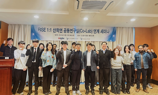 [뉴스다컴] 지역과 대학의 동반 성장을 목표로 제주 RISE사업에 참여하고 있는 제주대학교 RISE사업단(이하 ‘사업단’) 미래전략3팀의 ‘1:1 산학연 공동연구실 Co-Lab 구축’ 프로그램의 ‘제주대학교 약학대학 약제학 연구실(생체이용률조절연구실)’은 ㈜메인과 지난 1월 13일, 약학 및 바이오·헬스케어 분야 연구 협력 강화를 위한 업무협약(MOU)를 체결하고 사업단의 1:1 산학연 공동연구실 Co-Lab 연계 공동 세미나를 개최했다고 밝혔다.