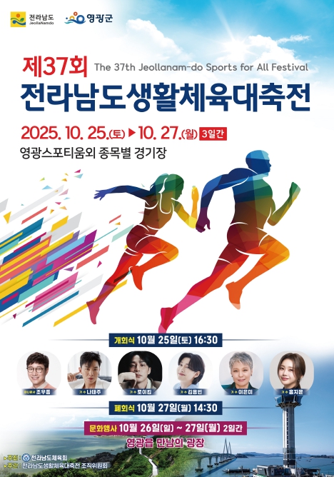 [뉴스다컴] 전라남도체육회가 주최하고 전라남도 생활체육대축전 조직위원회가 주관하는 제37회 전라남도생활체육대축전이 10월 25일 오후 4시 30분, 영광스포티움 종합운동장에서 성대하게 막을 올린다.