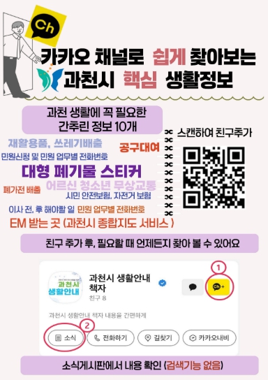 [뉴스다컴] 과천시는 반복적인 생활 민원 응대를 줄이고 시민들의 정보 접근성을 높이기 위해 ‘과천시 생활안내 책자 카카오 채널’을 운영한다고 밝혔다.