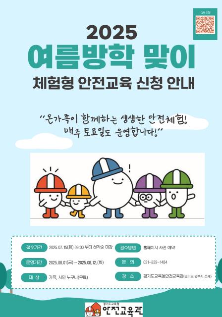 임윤재 경기도교육청안전교육관장은 “가족과 함께하는 이번 여름방학 체험형 안전교육은 실제 위기 상황에서의 대처능력을 키우는 데 큰 도움이 될 것”이라며 “모두가 안전을 생활화할 수 있도록 다양한 체험 중심 교육을 지속적으로 제공하겠다”고 말했다.