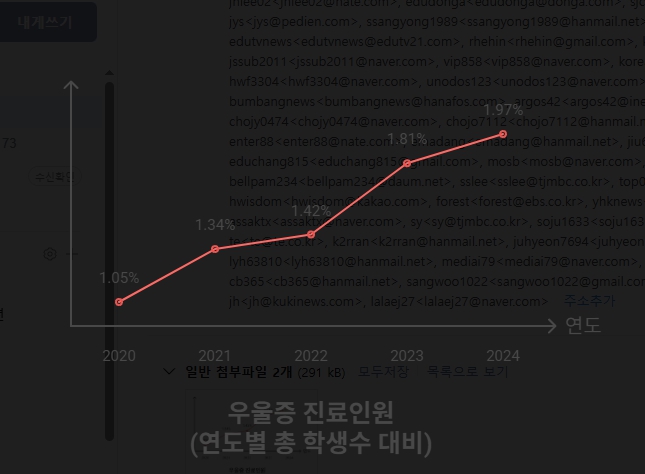 같은 기간 전체 학생 수는 약 15% 증가에 그친 반면, 우울증 진료 인원은 115% 이상 급증해 정서적 위기를 겪는 아동·청소년이 빠르게 확산되고 있음을 보여준다.