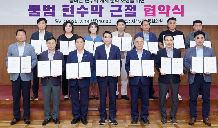 이완섭 서산시장을 비롯한 각 기관, 단체장과 관계자는 협약을 통해 올바른 현수막 게시 문화 조성에 노력하기로 했다.