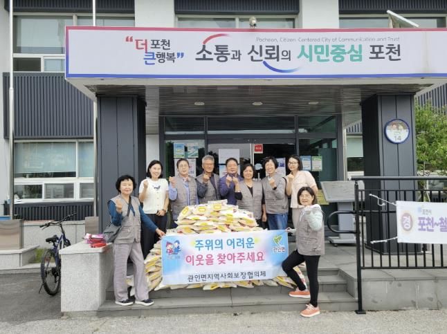 이날 행사에서 관인면지역사회보장협의체 회원들은 쌀 100포(170만 원 상당)를 구매하여 취약 가구 등 100가구에 전달하며 안부를 확인했다.