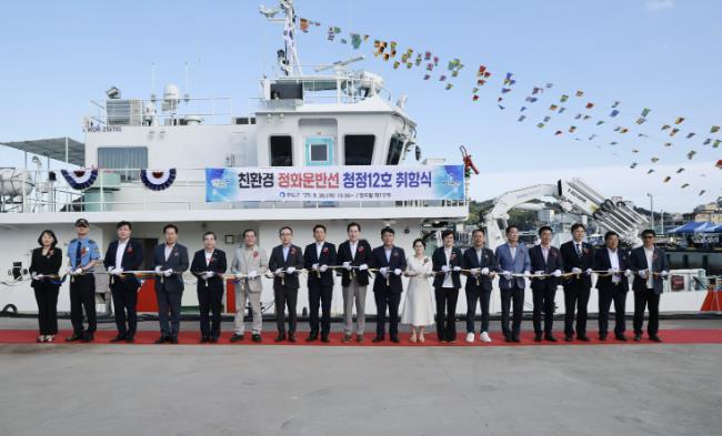 ▲ 내려받기완도군은 다목적 친환경 정화 운반선 _청정 12호_ 취항식을 가졌다 |
