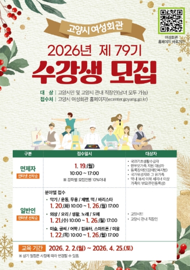 [뉴스다컴] 고양특례시 여성회관은 오는 1월 19일부터 26일까지 2026년도 제79기 정규강좌 수강생을 모집한다고 밝혔다.