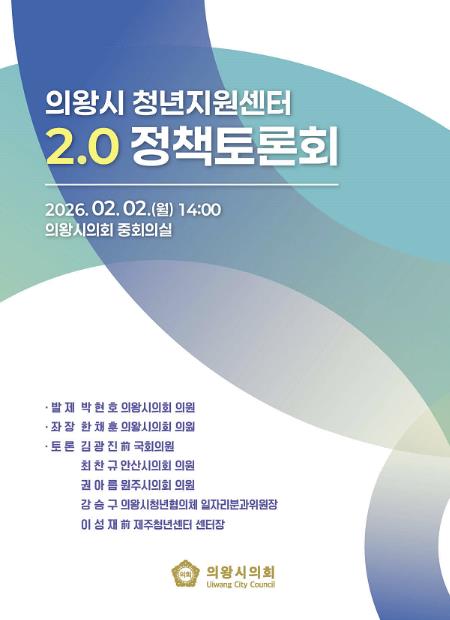 [뉴스다컴] 의왕시의회는 한채훈 의원이 오는 2월 2일 오후 2시, 의왕시의회 중회의실에서 '의왕시 청년지원센터 2.0 정책토론회'를 개최한다고 밝혔다.