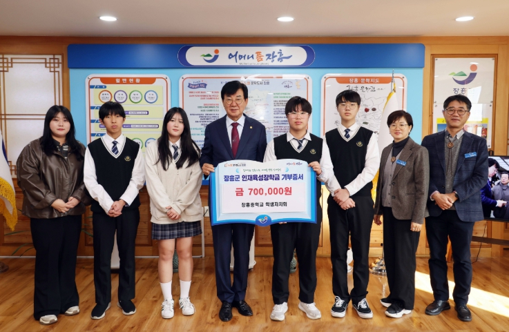 [뉴스다컴] 장흥중학교 학생자치회는 5일 (재)장흥군인재육성장학회에 지역 인재 육성을 위해 70만 원의 장학금을 기탁했다.