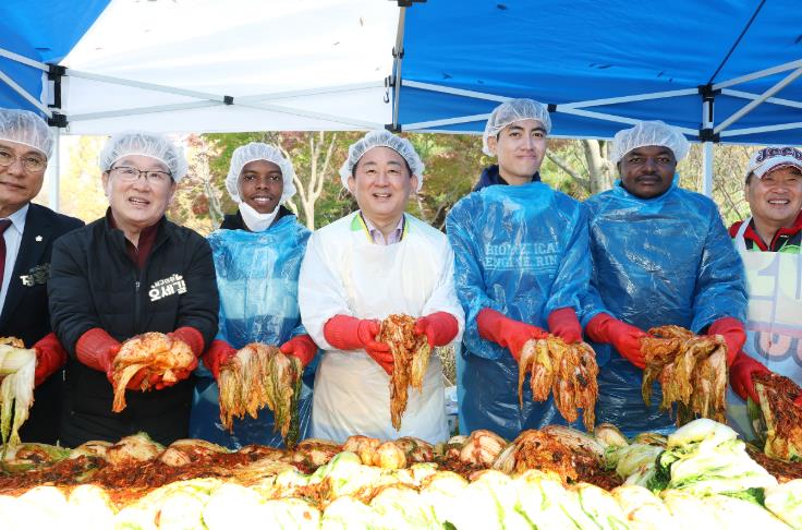 인도네시아, 케냐, 르완다, 탄자니아 등 16개국에서 온 정부 초청 외국인 장학생들은 밝은미래연합 사회봉사모임, 배재대학교 재능봉사단과 함께 김치 속재료 넣기, 버무리기, 포장 등 김장 전 과정을 직접 체험했다.