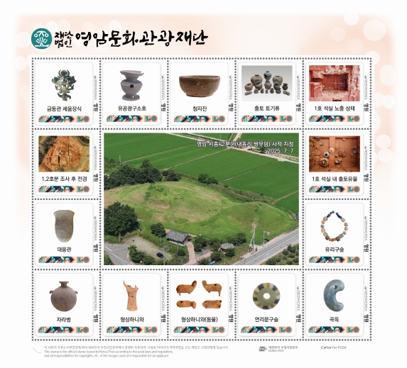 이번 기념우표는 영암 시종 고분군의 사적 지정을 기념하고, 그 역사적·학술적 가치를 전국적으로 널리 알리기 위해 기획됐다.