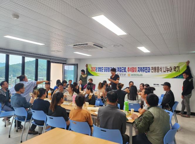 [뉴스다컴] 남영양농협은 지난 10월 3일 영양군 농업근로자 기숙사에서 라오스 출신 공공형 계절근로자 30명과 지역주민이 함께하는‘추석맞이 전통음식 나누기' 행사를 가졌다.