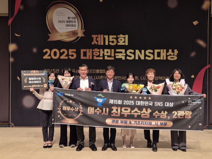 [뉴스다컴] 여수시가 16일 서울 한국프레센터 국제회의장에서 열린 ‘제15회 2025 대한민국 SNS대상’에서 기초지자체 시(市) 부문과 관광 부문 2개 분야 최우수상을 수상하며 10년 연속 수상의 영예를 안았다.