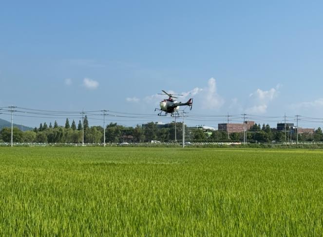 벼 병해충 공동방제 농작업 대행료 지원사업은 마을·들녘 단위 10ha내외의 구획화된 벼 재배단지를 대상으로 농약살포 무인헬기, 드론, 광역방제기, 붐스프레이어 등을 활용한 방제작업 대행료를 연 최대 3회까지 전액 지원한다.