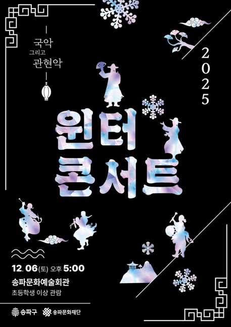 서강석 송파구청장은 “멋진 장소에서 사랑하는 사람들과 다채로운 공연을 감상하며, 즐겁고 따스한 연말 보내시길 바란다”라며, “새해에도 송파문화예술회관을 중심으로 구민의 문화 향유 기회를 확대하기 위해 최선을 다할 것”이라고 전했다.
