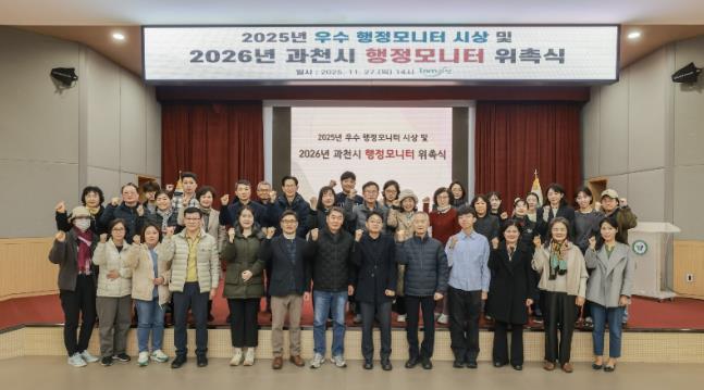 [뉴스다컴] 과천시는 지난 27일 시청 대강당에서 ‘2026년 행정모니터 위촉식’ 및 ‘2025년 행정모니터 활동 우수자 시상식’을 개최했다.