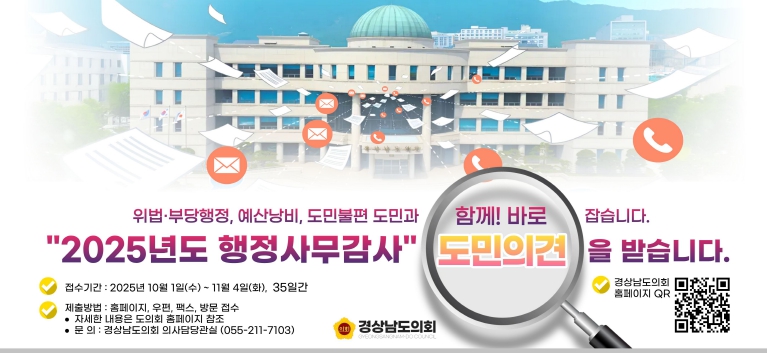 ▲ “도민 목소리 듣습니다” 경남도의회, 행정사무감사 사전 의견 접수 |