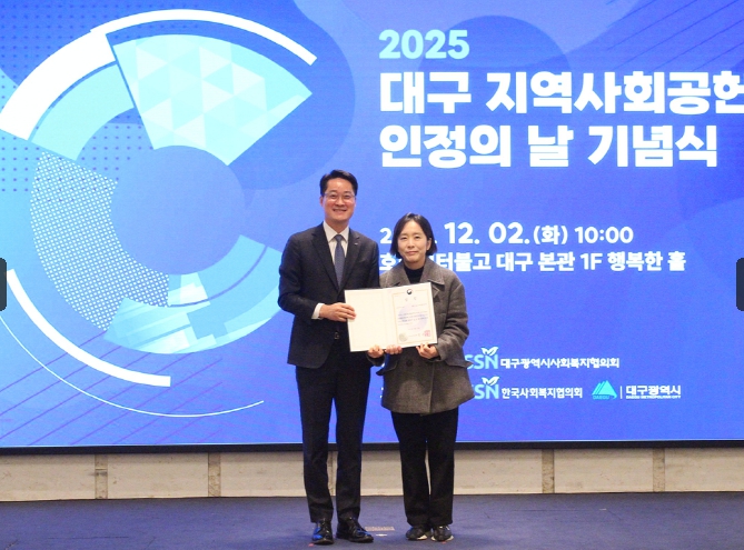 [ 대구도시개발공사는 지난 12월 2일, 보건복지부와 한국사회복지협의회가 주관하는 ‘2025년 지역사회공헌 인정제’에서 A+등급을 획득하고 보건복지부 장관상을 수상했다고 밝혔다.