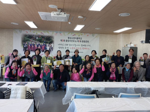 [뉴스다컴] 횡성군은 성인 문해 학습장인 횡성소망이룸학교의 제3회 졸업사은회 및 제1회 총동문회를 28일 평생학습관 5층 다목적강당에서 개최했다.