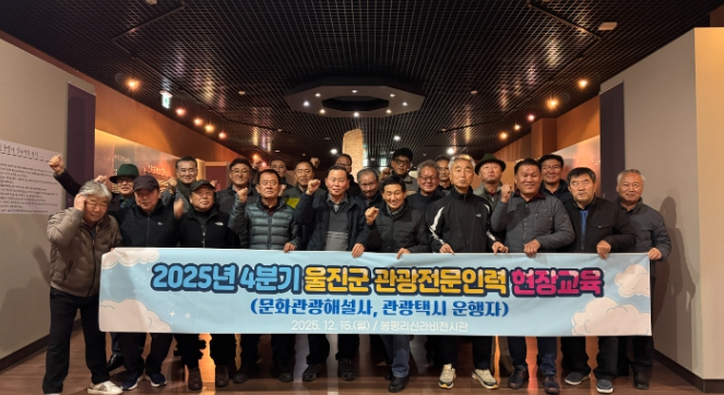 [뉴스다컴] 울진군은 지난 12월 15일 울진봉평리신라비전시관에서 울진군 관광택시 운행자와 문화관광해설사를 대상으로 2025년 4분기 울진군 관광전문인력 정기교육을 실시했다.