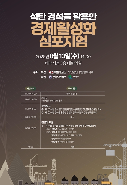 [뉴스다컴] 강원특별자치도는 폐기물 규제 해소로 산업자원 활용 가능성이 열린 석탄경석의 산업화 방안을 논의하기 위해 8월 13일 태백시청에서 ‘폐광지역 경제활성화 심포지엄’을 개최했다.