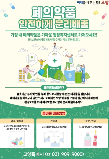 [뉴스다컴] 고양특례시는 가정에 방치된 폐의약품의 안전한 회수를 위해 관내 44개 동 행정복지센터에 폐의약품 수거함을 신규 설치했다고 7일 밝혔다.
