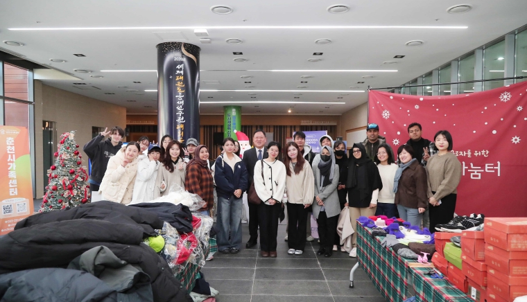 춘천시는 5일 시청 청사 로비에 조성된 ‘나눔의 장’에서 외국인 유학생·근로자 대상 겨울의류 나눔행사를 개최했다. 이번 행사는 소양동지역사회보장협의체와 시니어클럽 황금천사사업단의 후원을 받아 진행, 역대 최대 규모인 500여 점의 의류가 전달됐다. 이날 행사에는 현준태 부시장이 참석해 나눔 현장을 둘러봤다.