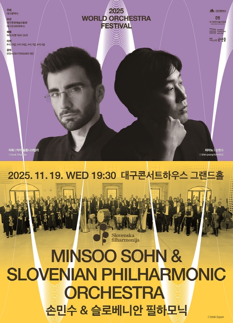 [뉴스다컴] 대구콘서트하우스는 월드오케스트라페스티벌의 일환으로 ‘손민수 · 슬로베니안 필하모닉’ 공연을 11월 19일 오후 7시 30분 그랜드홀에서 개최한다.