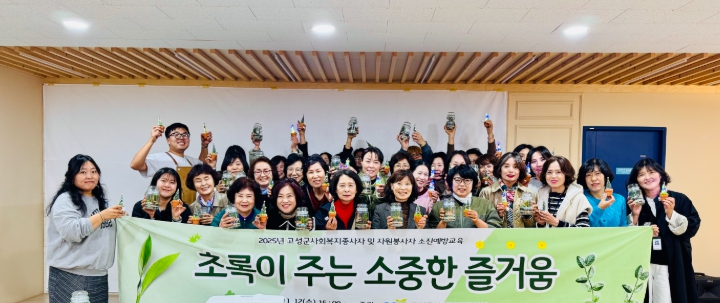 [뉴스다컴] 고성군사회복지협의회는 11월 12일, 고성청년센터에서 사회복지종사자 및 자원봉사자 32명을 대상으로 ‘초록이 주는 소중한 즐거움’ 소진예방교육을 개최했다.