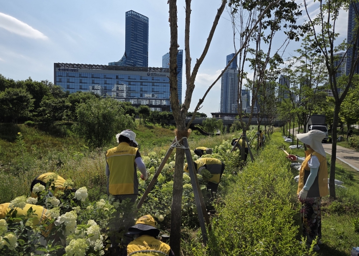 이날 교육은 조경식재업체 전문가를 초빙해 가지치기, 잡초제거, 급수방법 등 식재관리 방법을 안내하는 현장교육방식으로 진행했다.