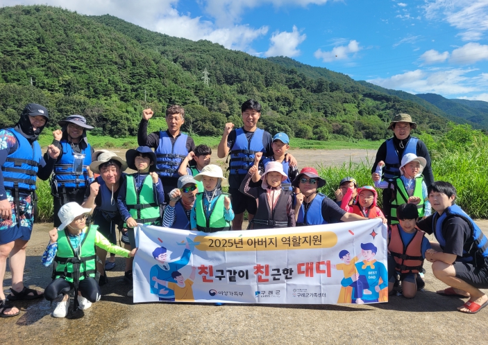 [뉴스다컴] 구례군가족센터(센터장 박미연)는 9월 14일 전남 구례군 간전면 섬진강 일대에서 아버지와 초등학생 자녀 10가족이 참가하여 래프팅 및 물놀이 활동을 진행했다. 이번 행사는 아버지 역할 지원 사업 ‘친구처럼 친근한 대디’프로그램으로 변화하는 아버지 역할을 제공하고, 자녀와의 활동을 통해 건강한 가족관계를 도모하고자 기획했다. 전문적인 래프팅 업체의 안전한 진행과 아버지들의 적극적인 참여로 자녀들과 즐겁고 행복한 래프팅 활동 시간이 됐다.