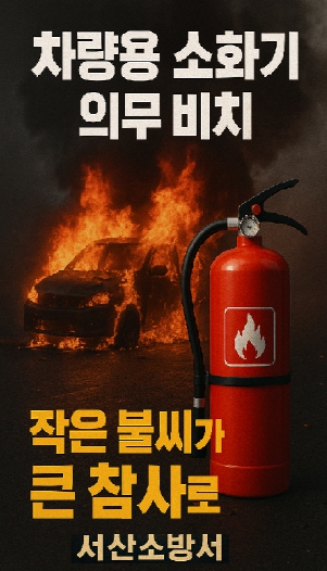 [뉴스다컴] 서산소방서는 최근 빈번히 발생하는 차량 화재 사고와 관련해 차량용 소화기 비치 의무화를 적극 당부했다.