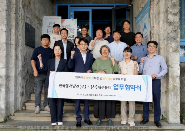 [뉴스다컴] 한국동서발전㈜(사장 권명호) 제주사업추진단과 (사)제주올레(대표이사 안은주)는 23일 15시 서귀포 제주올레여행자센터에서 ‘제주의 문화·자연환경 보전 및 지역인재 양성을 위한 업무협약’을 체결했다.
