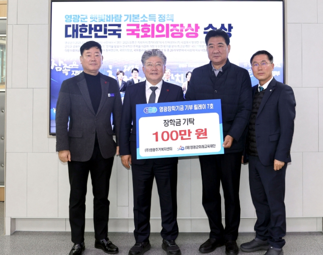 이어 ㈜영광주거복지센터(대표 김근수)는 영광장학기금 기부 릴레이 7호로 장학금 100만 원을 기탁했다.